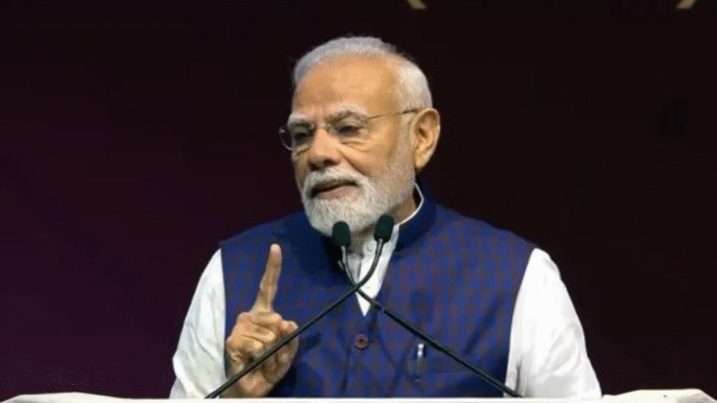 PM Modi indirectly slammed Trump tariffs, saying India’s economy grew 7.8% despite global “economic selfishness.” He urged trust in India’s future growth.